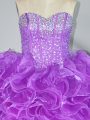 Custom Made Purple Organza Lace Up Sweetheart Sleeveless Floor Length Sweet 16 Dress Beading and Ruffles