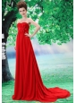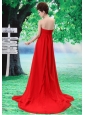 Custom Made Red 2013 Prom Dress Hand Made Flower and Ruch
