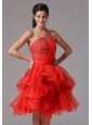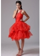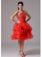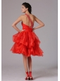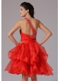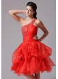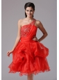 Custom Made Red A-line One Shoulder Beaded Decorate Bust Prom Cocktail Dress With Organza in Monroe Connecticut