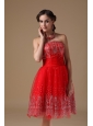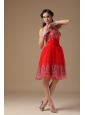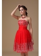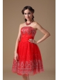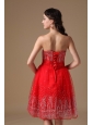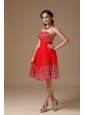 Custom Made Red A-line Short Prom Dress   Strapless Taffeta and Organza Embroidery   Knee-length