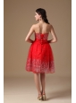 Custom Made Red A-line Short Prom Dress Strapless Taffeta and Organza Embroidery Knee-length
