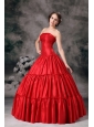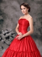 Home >  Quinceanera Dresses >  Discount Quinceanera Dresses > Custom Made Red Ball Gown Strapless Quinceanera Dress Taffeta Ruch Floor-length