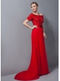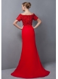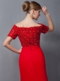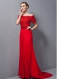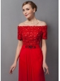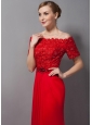 Custom Made Red Column Mother Of The Bride Dress Off The Shoulder Appliques Brush Train Chiffon