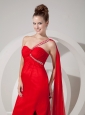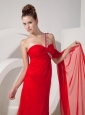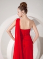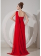 Custom Made Red Empire One Shoulder Prom / Evening Dress Chiffon Beading Watteau Train