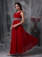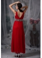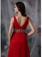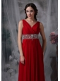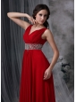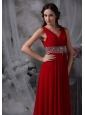 Custom Made Red Empire V-neck Chiffon Prom / Evening Dress with Beading