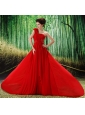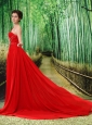 Home >  Prom Dresses >  Popular Prom Dresses > Custom Made Red One Shoulder Ruched Bodice Prom Dress Beaded Decorate Bust In Formal Evening