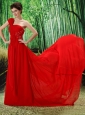 Bright and dramatic! This prom gown must let you stunning on the crowd. It features a one-shoulder bodice with ruching detail. A asymmetrical waist sash adds rhinestones beading and details to the dress. The floor-length skirt is a long begins at the waist and envelopes the legs in soft chiffon all the way to the floor in clean lines. The court train and zipper up back finishes the look. If you are looking for a charming dress without the high-end price tag, this is undoubtly tone you should consider.