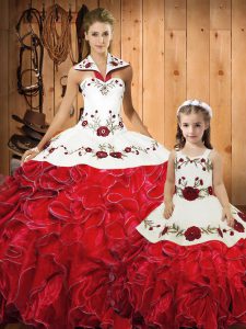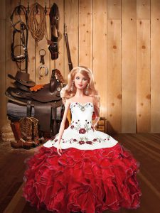 Home >  Quinceanera Dresses >  Princesita with Quinceanera Dresses > Custom Made Red Sleeveless Tulle Lace Up Quinceanera Gowns for Military Ball and Sweet 16 and Quinceanera