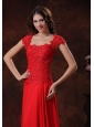 Custom Made Red Square Neckline Prom Dress With Lace Over Bodice In Flagstaff Arizona