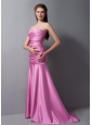Custom Made Rose Pink Mermaid Strapless Homecoming Dress Brush Train Taffeta Ruch