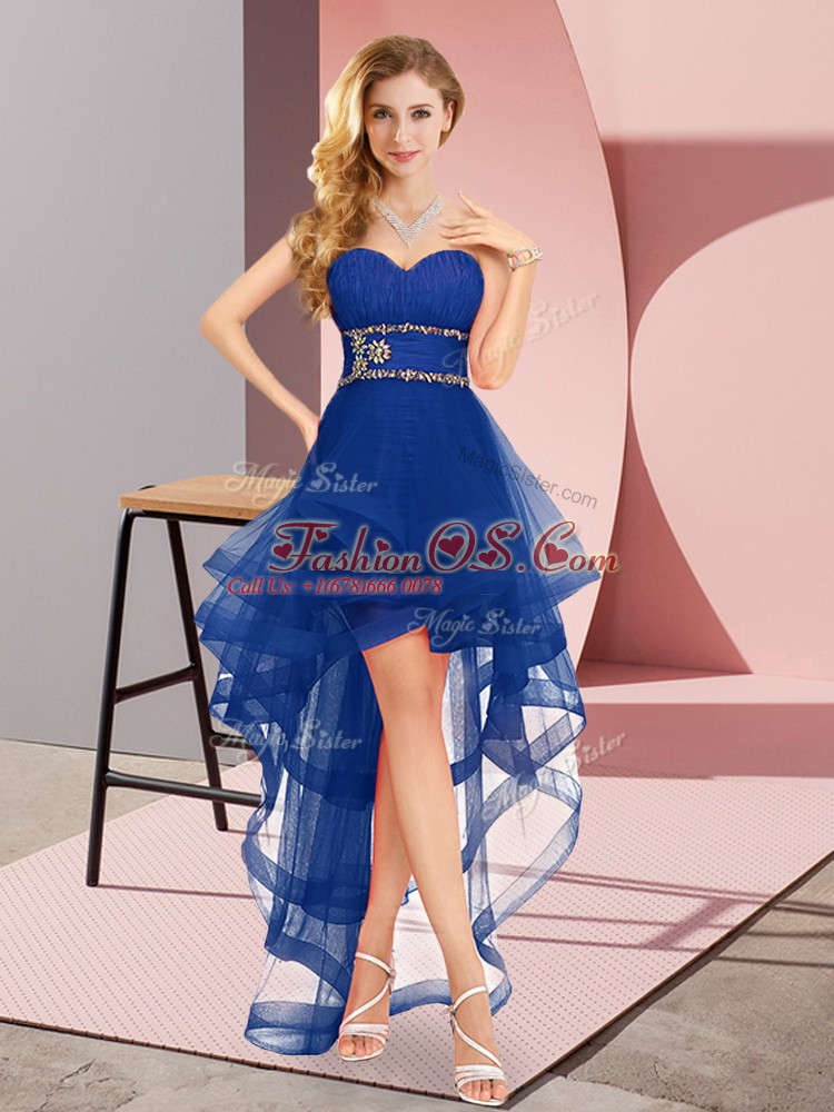 Custom Made Royal Blue A-line Beading Juniors Party Dress Lace Up Tulle Sleeveless Floor Length