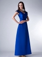 Home >  Bridesmaid Dresses >  Elegant Bridesmaid Dresses > Custom Made Royal Blue Column V-neck Bridesmaid Dress Satin Ruch Ankle-length