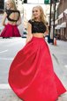 Custom Made Scoop Pink And Black Prom Dress Satin Brush Train Short Sleeves Lace