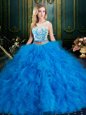 Custom Made Scoop Sleeveless Zipper Quinceanera Dress Blue Tulle