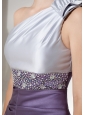 Custom Made Silver and Dark Purple Prom Dress With One Shoulder Neckline Beaded Decorate Waist