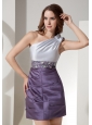 Home >  Special Occasion Dresses >  Cocktail Dresses > Custom Made Silver and Dark Purple Prom Dress With One Shoulder Neckline Beaded Decorate Waist