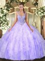 Custom Made Sleeveless Tulle Floor Length Lace Up 15th Birthday Dress in Lavender with Beading and Ruffles