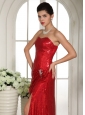 Stunning and fabulous are two words to perfectly describe this dress. The gown is made from sequince entirely, which is shown in different colors under the light. It features a strapless bodice with sweetheart neckline. The lines of pleating adds more interests. The floor-length skirt with a sexy slit is smooth and elegant. This excellent dress is your best choice for any party.