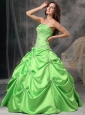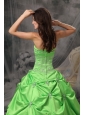 Home >  Quinceanera Dresses >  Popular Quinceanera Dresses > Custom Made Spring Green Ball Gown Strapless Quinceanera Dress Taffeta Beading Floor-length