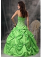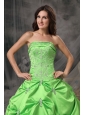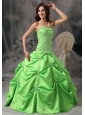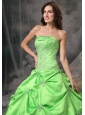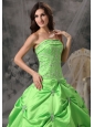 Custom Made Spring Green Ball Gown Strapless Quinceanera Dress Taffeta Beading Floor-length