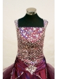 Custom Made Square Neckline Burgundy Beaded Decorate Bodice Flower Girl Pageant Dress