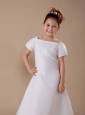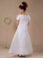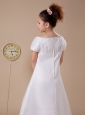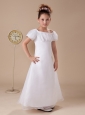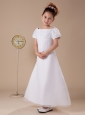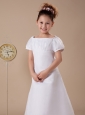 Custom Made Square Short Sleeses Flower Girl Dress White Ankle-length Wedding Party