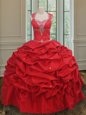 Custom Made Straps Taffeta Cap Sleeves Floor Length Quinceanera Dress and Beading and Pick Ups