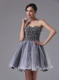 Silhouette: A-line / Pricess Neckline: Sweetheart Waist: Fitted Hemline/Train: Mini-length Sleeve Length: Sleeveless Embellishment: Beading Back Detail: Zipper-up Fully Lined: Yes Built-In Bra: Yes Fabric: Organza Shown Color: Black and White(Color & Style representation may vary by monitor.) Occasion: Prom, Graduation, Celebrity, Cocktail, Homecoming, Military Ball Season: Spring, Summer, Fall