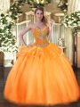 Custom Made Sweetheart Sleeveless Lace Up Quinceanera Gowns Orange Tulle