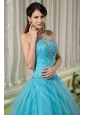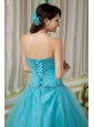 Custom Made Teal Ball Gown Sweetheart 15 Quinceanera Dress Tulle Beading Floor-length
