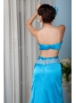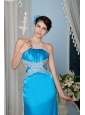 Home >  Prom Dresses >  Sexy Prom Dresses > Custom Made Teal Column / Sheath Strapless Prom Dress Satin Beading Brush Train