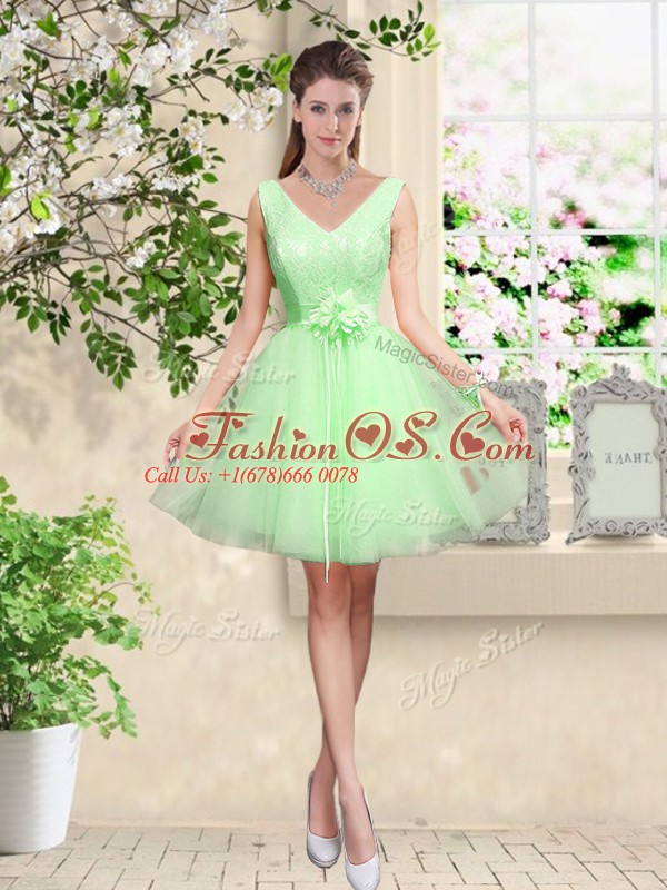 Custom Made Tulle V-neck Sleeveless Lace Up Lace and Belt Court Dresses for Sweet 16 in