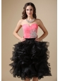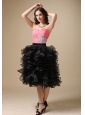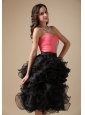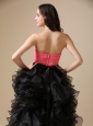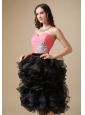Custom Made Watermelon Red and Black Evening Dress Column Sweetheart Organza Beading Tea-length