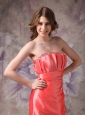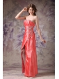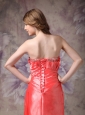Custom Made Watermelon Red Mother of the Bride Dress Column Strapless Taffeta Beading Floor-length