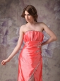 Home >  Special Occasion Dresses >  Mother of the Bride Dresses > Custom Made Watermelon Red Mother of the Bride Dress Column Strapless Taffeta Beading Floor-length