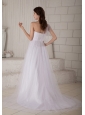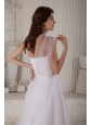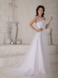 Ignite beauty in this miraculous wedding dress! This showstopping wedding dress has a straight neckline and dazzling dots at the only one strap and the whole skirt. The fabric wraps your figure for a dramatic look and light ruching adds texture to the bodice. The ruchings sits on the waist that curves the waistline amazingly. The dress has a hidden zipper which can dress on and off easier. The champel trail will make you move more idiosyncratic when you move at your wedding.