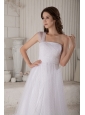 Custom Made Wedding Dress A-line / Princess One Shoulder Court Train Special Fabric