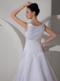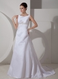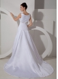Home >  Wedding Dresses >  Affordable Wedding Dresses > Custom Made Wedding Dress A-line Scoop Appliques Court Train Satin