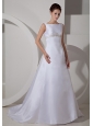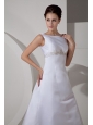 Custom Made Wedding Dress A-line Scoop Appliques Court Train Satin