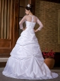 Custom Made Wedding Dress A-line Strapless Appliques Court Train Taffeta