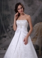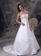 Custom Made Wedding Dress A-line Strapless Satin Embriodery Court Train