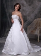 Home >  Wedding Dresses >  Elegant Wedding Dresses > Custom Made Wedding Dress A-line Strapless Satin Embriodery Court Train
