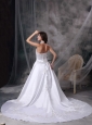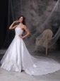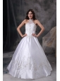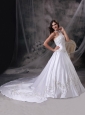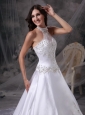 Custom Made White A-line Wedding Dress Halter  Satin Embroidery and Beading Cathedral Train