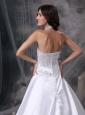 What a gorgeous wedding gown! This delicate and marvelous wedding dress has a sweetheart neckline, the bust is encrusted by tulle fabric to show your hazy beauty. Whole dress decorates with wonderful embroidery and beading which makes the skirt more attractive. The zipper up back and nice train finish the gorgeous design. Every detail of the dress from head to foot is perfectly tailored.