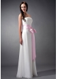 Custom Made White and Baby Pink Sash Empire Strapless Bridesmaid Dress Chiffon Ruch Floor-length