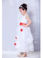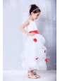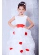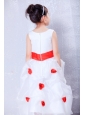 Home >  Flower Girl Dresses > Custom Made White and Red A-line Scoop Hand Made Flowers Flower Girl Dress Ankle-length Organza and Taffeta