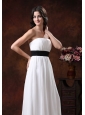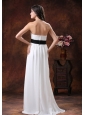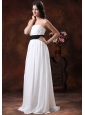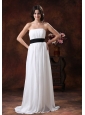 Home >  Wedding Dresses >  Low Cost Wedding Dresses > Custom Made White Chiffon Brush Train Low Cost Wedding Dress With Black Belt Decorate In Safford Arizona