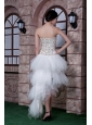 Home >  Prom Dresses >  High Low Prom Dresses > Custom Made White Column Strapless High-low Prom Dress Beading Taffeta and Tulle