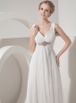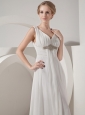 Custom Made White Empire V-neck Homecoming Dress Chiffon Beading Floor-length