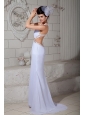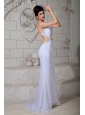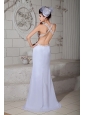 Custom Made White Empire V-neck Prom Dress Chiffon Ruch Brush Train